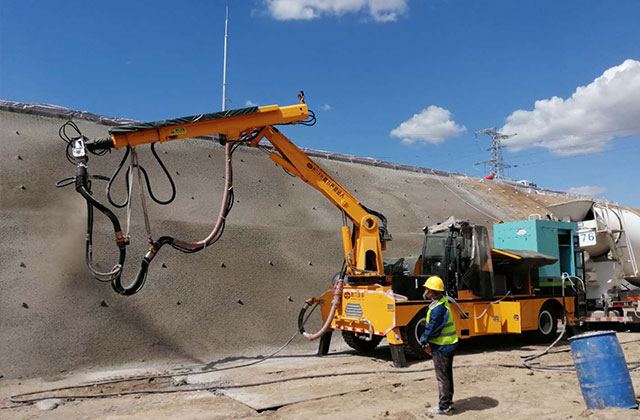 混凝土濕噴機械手又稱為混凝土濕噴臺車、混凝土濕噴機械臂、混凝土噴漿機械手。混凝土濕噴機械手具有施工機械化程度高、工作效率高、回彈量少、施工安全性強、作業環境好、自動化程度高等特點,既能克服傳統混凝土干噴機存在的問題,又能提高隧道噴射混凝土質量,降低操作人員的勞動強度,使施工效率和經濟效益得到明顯提高。